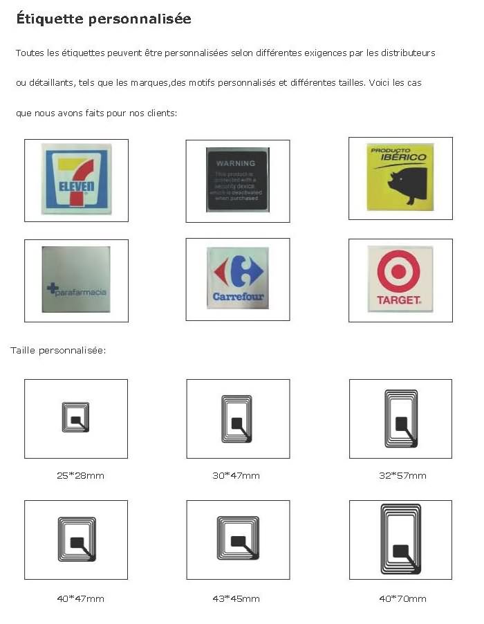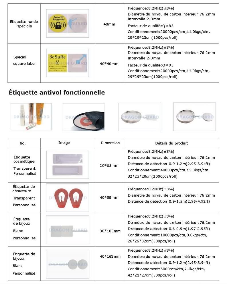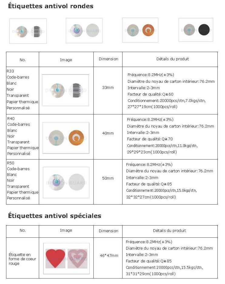 étiquette molle étiquette molle/ étiquette de papier Un grand choix d'étiquettes autocollantes contre le vol en magasin, compatibles avec tous les systèmes antivol du marché bande de fin de support ( de code à barres ) DR/LE/ étiquette d'art